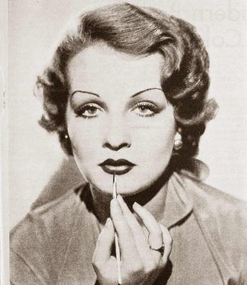 Se dan a conocer las primeras "estrellas de la gran pantalla", y con ellas el nuevo ideal de belleza. La figura recta de los años 20´s queda atrás y se empieza a marcar la figura natural del cuerpo; melenas medias y rubias, cejas muy delgadas y arqueadas, y labios rojos.