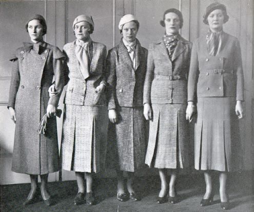 La cintura regresa a su lugar, definiéndose con la ayuda de cintos, y los cuellos suben un poco. La silueta de los trajes se masculiniza y se adapta un poco más a una realidad inminente en la que la mujer debe trabajar.